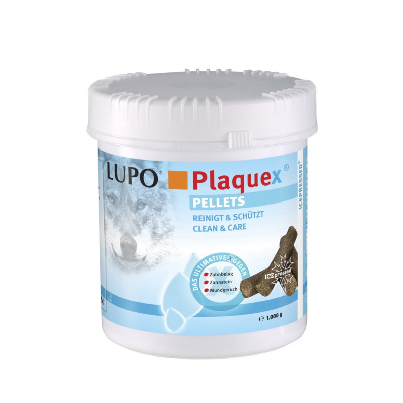 Les friandises LUPO PLAQUEX sont composées à 100% d'ingrédients naturels sous la forme d'un granulé pressé à froid, spécialement développées pour l'hygiène bucco-dentaire de votre chien.