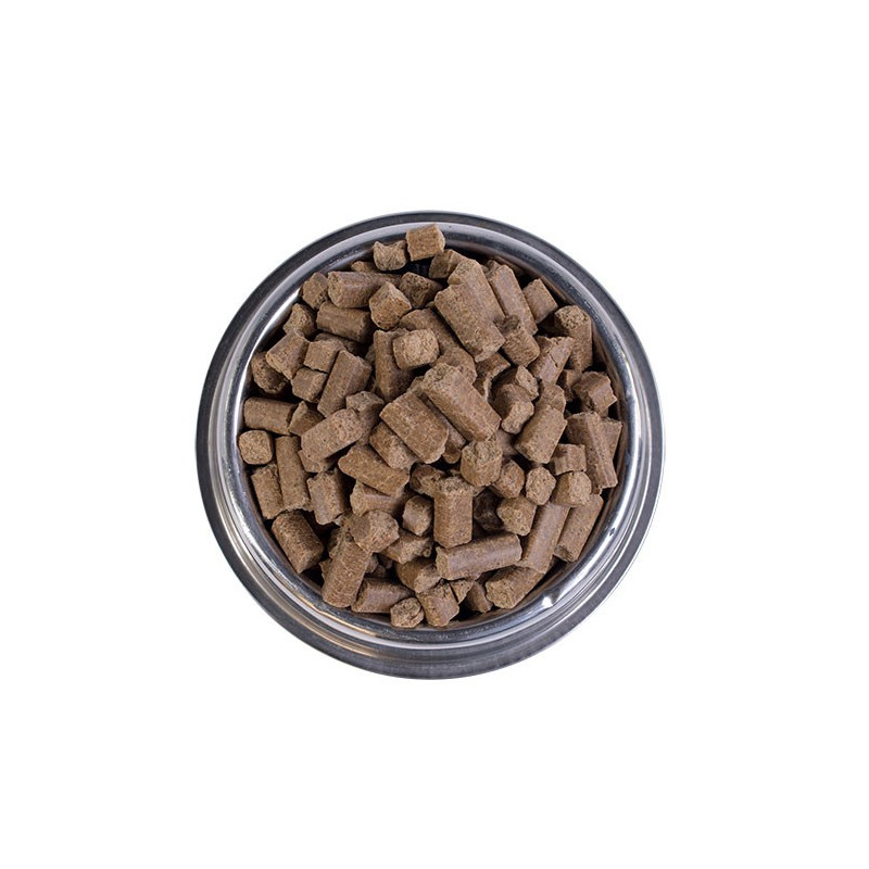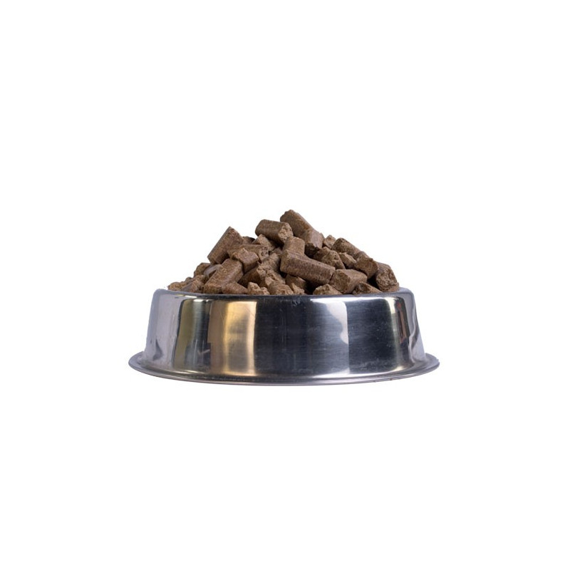 Ces croquettes bénéficient d’un pressage à froid (47°) et ce procédé de pressage ne peut se faire qu’avec des matières premières d’excellente qualité, exempt de sous-produits transformés d’origine animale ou végétale, sans colorants, ni graisses ou produits ajoutés pour doper l’appétence, ni stabilisants chimiques.